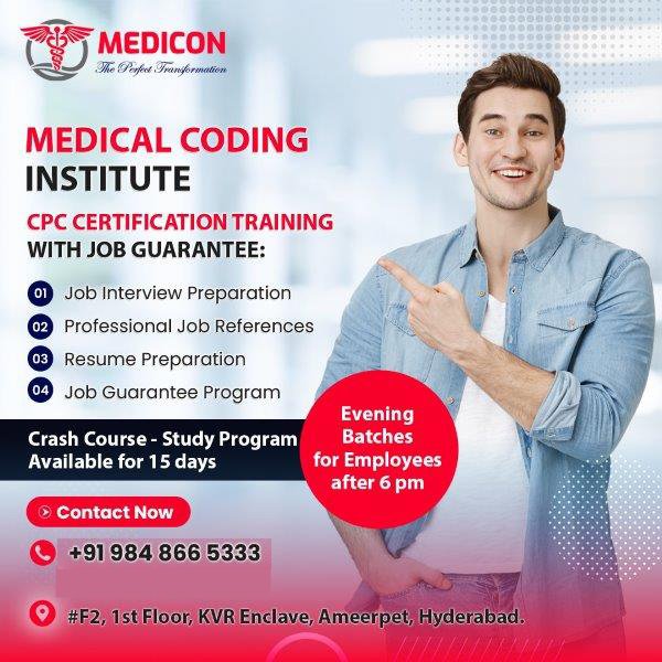 Quality training is at the core of MEDICON’s medical coding courses, making it the best medical coding training institute in Hyderabad. The institute emphasizes coding excellence by providing comprehensive instruction, detailed study materials, and continuous support throughout the learning process.